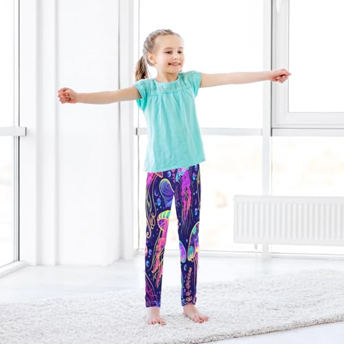 Bolaz Toddler Girls Leggings Printed Yoga Pants Leggings Purple Blue Jellyfish for Kids 7