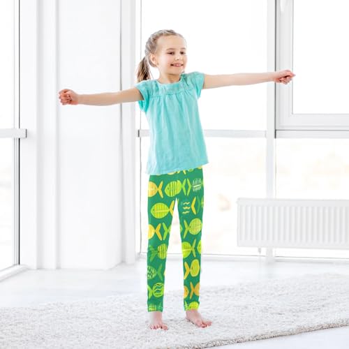 Bolaz Toddler Girls Leggings Printed Yoga Pants Leggings Green Orange Fish for Kids 7