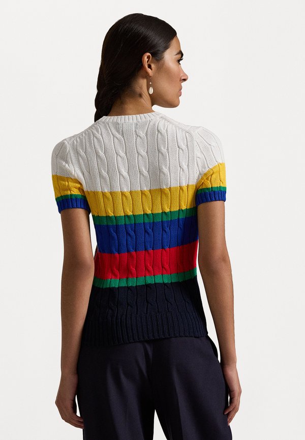 STRIPED CABLE SHORT SLEEVE SWEATER - Print T-shirt 2