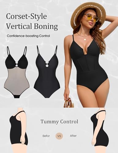 • FLATTERING U-WIRE - Tummy control swimsuits for women feature a flattering deep V neckline with a subtle U-wire insert, enhancing your natural shape and draws the eye upward, creating a lengthening effect for the torso.