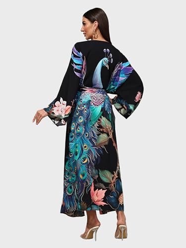 Swimsuit Coverups for Women Long Kimonos Robes Peocock Flower Printed Boho Beach Cover Ups Summer Holiday Sarong Wraps 6