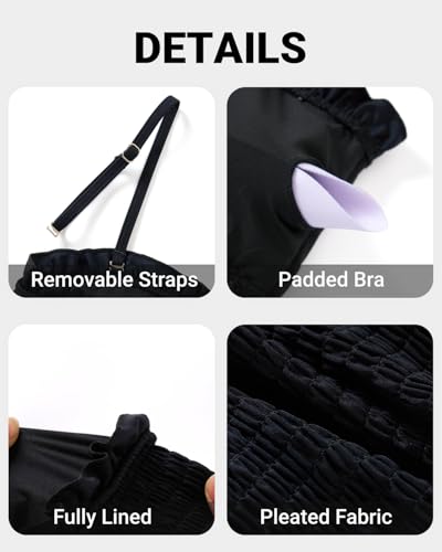 • Various Occasions: Black two piece swimsuit with a strapless shirred swim top is suitable for tropical vacations, summers, beaches, swimming pools, honeymoons and any other water occasions.