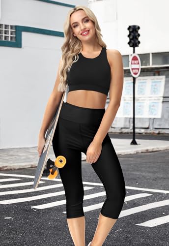 • High Waisted Tummy Control Design: Flattering wide elastic high waistband smooths your silhouette while the knee-length design prevents chafing and sunburn. Opaque fabric ensures modesty. Tummy Control Design stay in place during intense activities, no more awkward adjustments