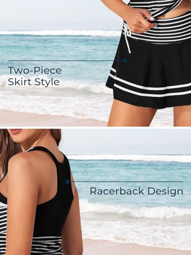 MiYang Tankini Swimsuits for Women Two Piece Tummy Control Bathing Suit with Skirt Striped Vintage Swimdress 2