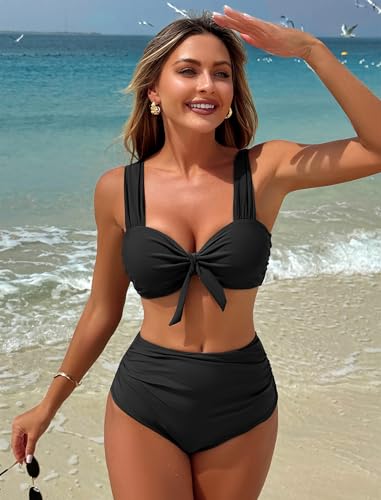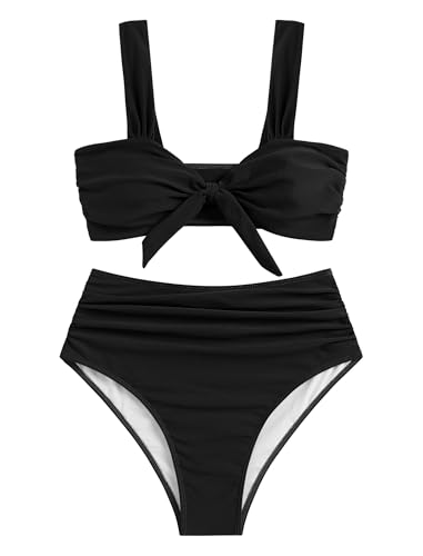 More information about ZAFUL High Waisted Bikini Sets for Women Swim Suits 2025 Tummy Control Ruched Bikini Two Piece Bathing Suit Swimwear