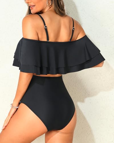 Tempt Me Women Two Piece High Waisted Bikini Set Swimsuit Off Shoulder Ruffle Bathing Suits Tummy Control Ruched Swimwear 1