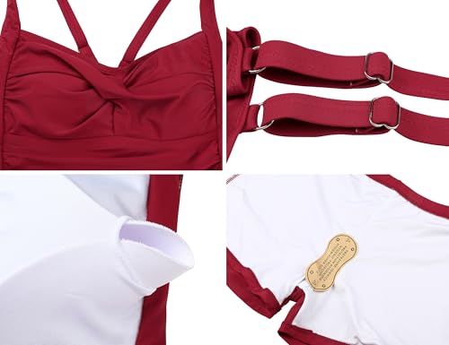 • Women skirted swimdress with adjustable fit, the front twist detail elegantly accentuates your figure, while removable bra pads and adjustable straps ensure a customized fit. The crisscross back adds a charming, feminine touch