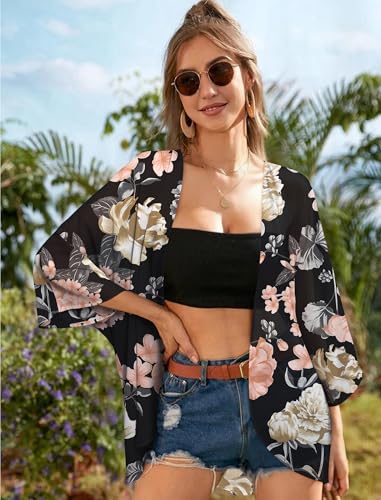 BB&KK Women's Floral Kimono Summer Short Cover Ups Tops 6