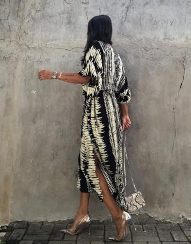• STYLE FEATURES: Featuring a comfortable V-neck design with a fashionable floral snake print, short sleeve style, side slits, and a loose-fitting long design, perfect for casual wear and beach cover-ups.