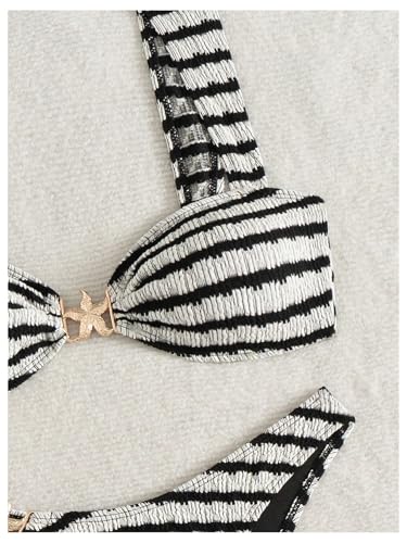 WDIRARA Women's 2 Piece Metal Starfish Brazilian Thong Bathing Suit Cheeky Bikini Set Swimsuit 2