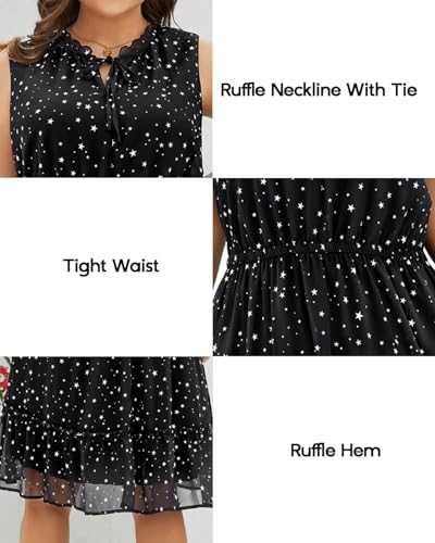Pinup Fashion Plus Size Summer Tie Crewneck Short Dresses Sleeveless Boho Casual Chiffon Ruffle Flowy Sundress 4