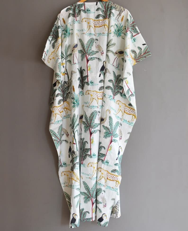 More information about Cotton Hand Block Print Kaftan Sleepwear Maxi Dress Robe, Women Dress Long Caftan,Dress Beach Cover up, Indian Handmade Floral Cotton Kaftan Multi