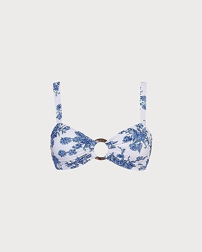 HOT ! Women's Floral Ruched Floral Cutout Smocked Ring Bathing Bikini Top