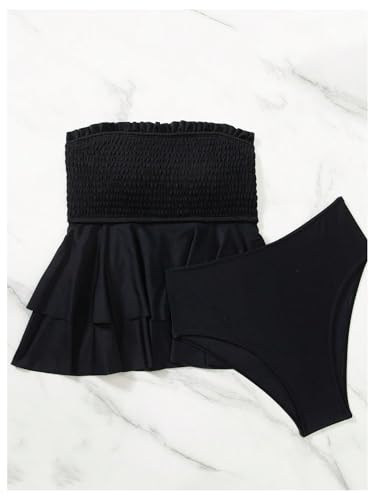 More information about SOLY HUX Women's Bandeau Tankini Swimsuits Two Piece Ruffled High Waisted Bathing Suits Beachwear