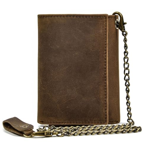 HOT ! Mens leather wallet Chain small RFID Blocking trifold Wallet Slim Minimalist Western Wallet For Men with Credit Cards(brown)