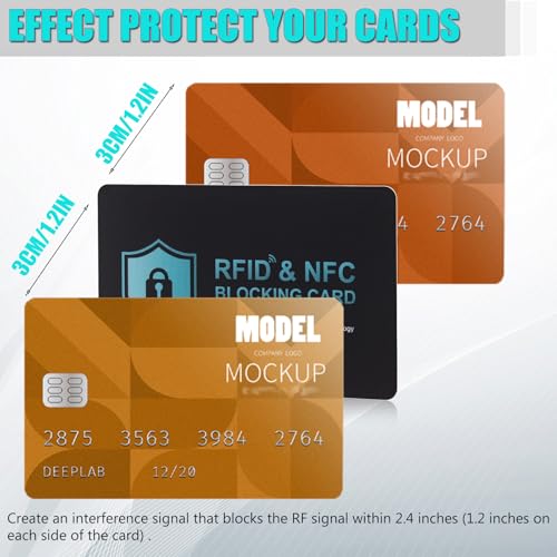 • Effective Protection: Uses the latest 13.56 Mhz RFID/NFC blocking technology to create an interference signal that blocks the RF signal within 2.4 inches (1.2 inches on each side of the card) . Protect your debit and ATM cards, contactless smart card, passport, driver's license, etc. from scanning and data theft