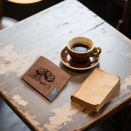 Custom Wallet for Men Personalized Leather Bifold Engraved Photo Picture Name Text Customized Unique Fathers Day Gift for Dad Husband Son Black 5