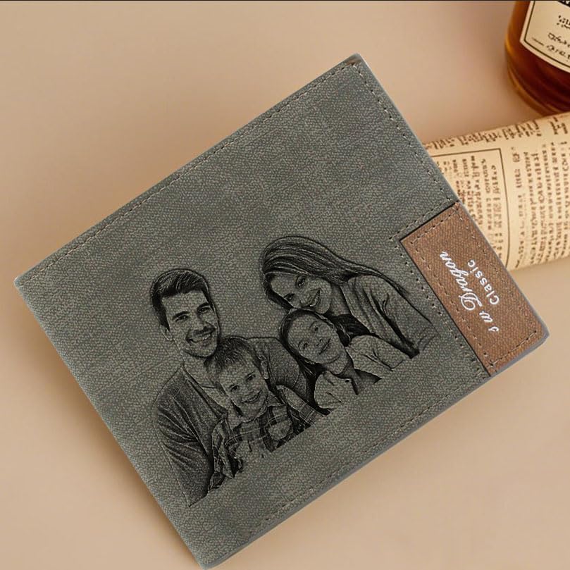 • Custom Wallet Engraved Photo & Text: Personalized leather wallet engraved with a photo, name, or short message — a one-of-a-kind keepsake he’ll carry every day with pride
