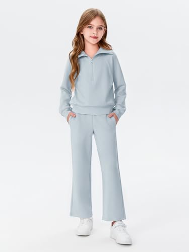 Haloumoning Girls 2 Piece Outfits Sweatsuit Half Zip Long Sleeve Sweatshirts Sweatpants Tracksuit Sets 5-14 years 6