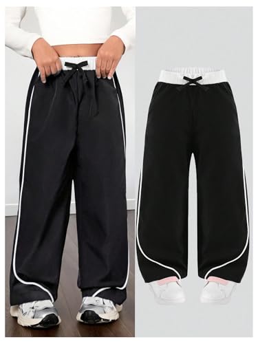WDIRARA Toddler Girl's Elastic Waist Sweatpants Workout Color Block Straight Leg Pants 6