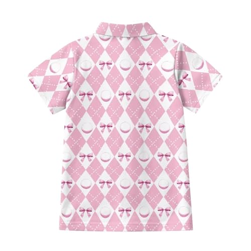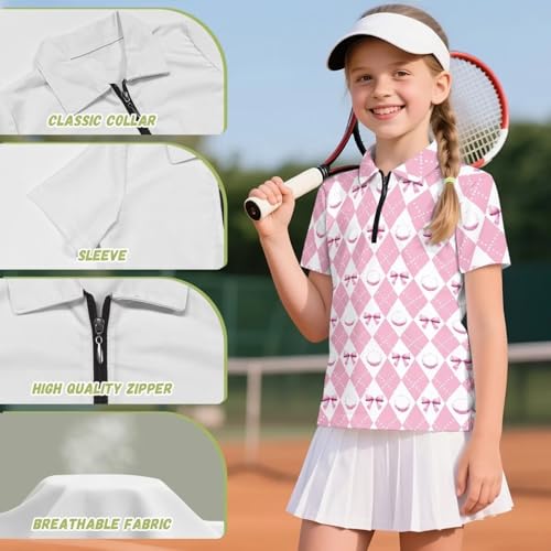 Girls 1/4 Zip Collared Golf Shirt 5-12 Y Kids Short Sleeve Golf Tops Summer Novelty Graphic Tennis Shirts 4