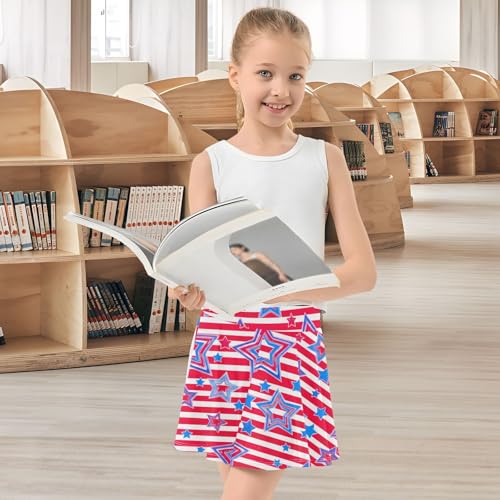 Little Girls Skort High Waisted Tennis Skirt with Shorts Flowy Athletic Cheer Skorts Red Blue White Stars Stripes 7
