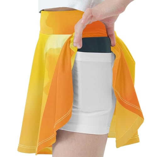 Joisal Athletic Shorts for Girls Skorts Orange Yellow Watercolor Kids Tennis Skirts Uniform Pleated Skort 3t 4