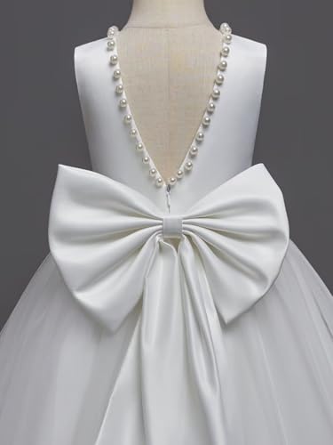 Flower Girl Dress Tulle Satin Pearls Knee Length A-Line First Communion Dresses for Girls Wedding Princess Ball Gown 5