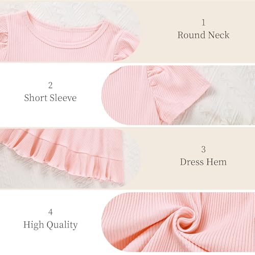 • ❤Material: Girls Summer Dresses are made of two different kind of fabrics: PINK, BLACK and GREEN dresses are knitted fabric, made of 93% cotton, 7% spandex; PURPLE, APRICOT and BLUE dresses are plain weave fabric, made of 95% cotton, 5% spandex. Both skin-friendly, soft, lightweight, breathable, and very comfortable to wear.