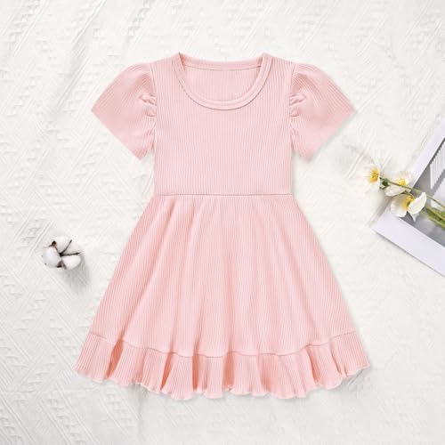 Little Girl Summer Dress Girls Puff Short Sleeve Ruffle Dress Solid Color A-Line Dresses 3-8 Years 4