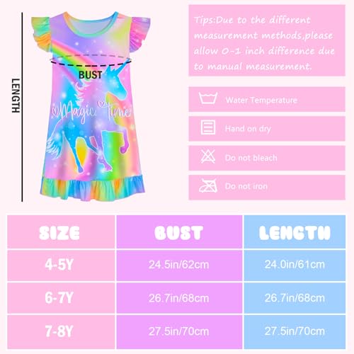 • 【Comfy Unicorn Girl Nightgown】Fiodrimy Girls Nightgowns are made by 95% quality polyester with 5% spandex, the fabric is super soft and breathable with stretch, skin friendly, do not irritate the skin, not allergies, offers best care for little girls' sweet dreams.
