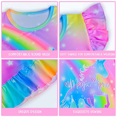 Fiodrimy 2Pcs Girls Nightgowns 3-8 Years Unicorn Sleepwear Night Sleep Dress Pajamas Little Kids Toddler Soft Nightgown 6