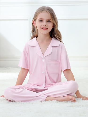 Umeyda Girls Modal Pajamas Set Button Down Sleepwear Loungewear PJS Shorts Sleeve Tops + Pants 5