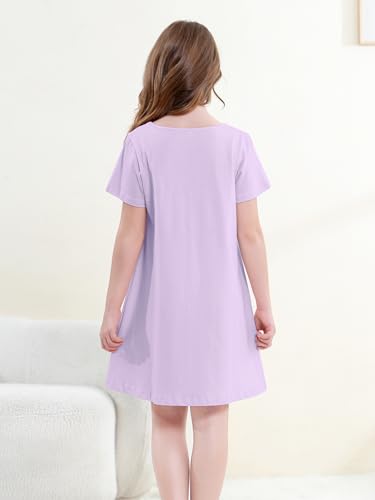 QZH.DUAO Girls Nightgowns 100% Cotton Short Sleeve Sleep Shirts Nightdress Sleepwear 5-14 6
