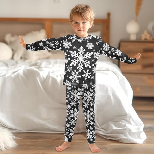 More information about Pigsaly Pajama Set 2 Piece White Black Texture Christmas Snowflakes Pajama Sets Long Sleeve Pjs Sleepwear 4T