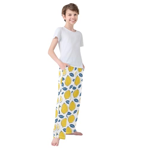 Beautiful Lemon Pattern Pajama Pants Lounge Sleep Pants Elastic Waist Long Pajama Bottoms with Pockets for 6-14 Years 7