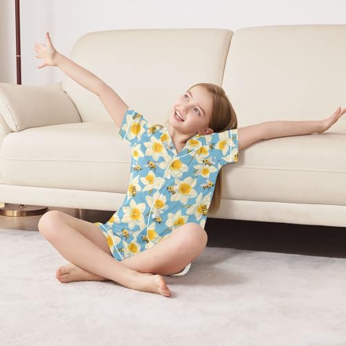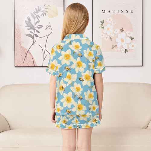Daffodils Flower Bee Elegant Summer Pajamas Set Soft Satin Pjs Sets 2 Piece Short Sleeve Sleepwear Casual Clothes 3