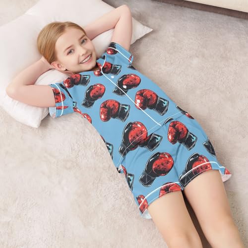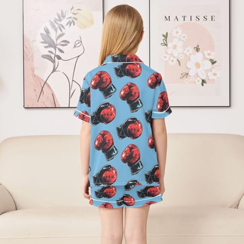 Boxing Gloves Pattern Pajamas Set Summer Button Down Sleepwear Pjs Sets Comfy Loungewear 4