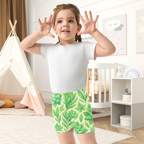 Joisal Shorts for Under Dresses Cotton Toddler Girl Biker Shorts 4t Little Girl Watercolor Green Succulents 4