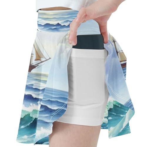 Joisal Girls Skorts Athletic Shorts Toddler Tennis Skirts 2 in 1 Pleated Skort Nautical Seascape Ship Sail 3t 7
