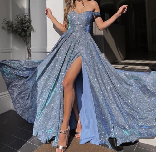 More information about Off Shoulder Prom Dresses for Women 2024 Sparkly Sequins Ball Gown Split Long Evening Formal Party Gowns with Pockets GL0007