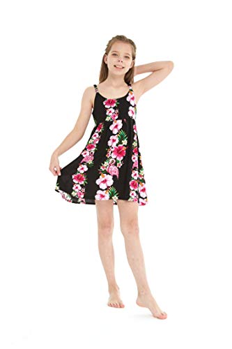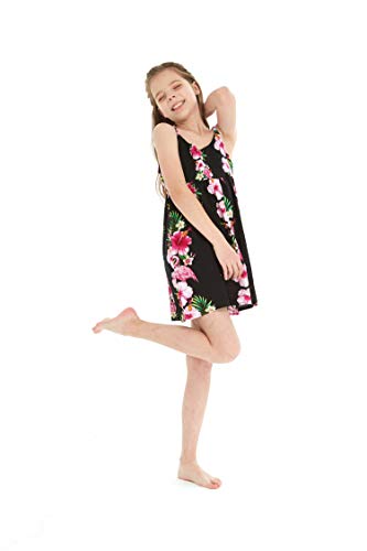 Girl Hawaiian Classic Empire Dress with Elastic Strap in Pink White Hibiscus Vine 5