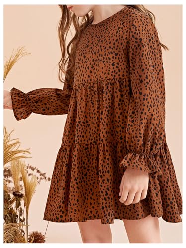 HOT ! Floerns Girl's Dalmatian Print Flounce Long Sleeve Babydoll Dress Ruffle Hem Swing Dresses