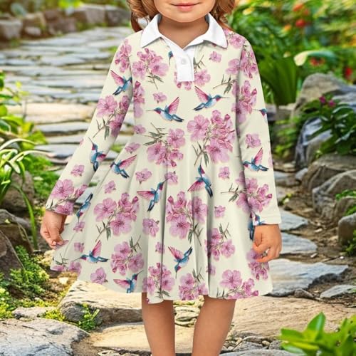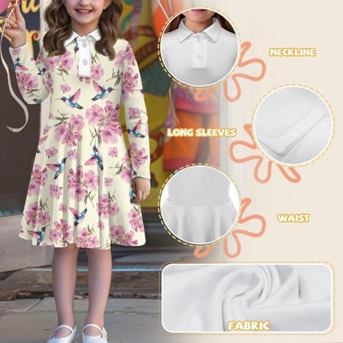 AmzPrint Long Sleeve Polo Dress for Girls Fit and Flare A Line Midi Swing Pleated Flowy Fall Tween Girls Dresses 6