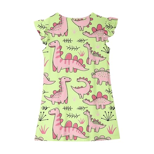 Girls Flutter Sleeve Summer Dress Cute Cartoon Dinosaur Print Loose A-Line Princess Swing Dresses for Kids 4-14 Years 4