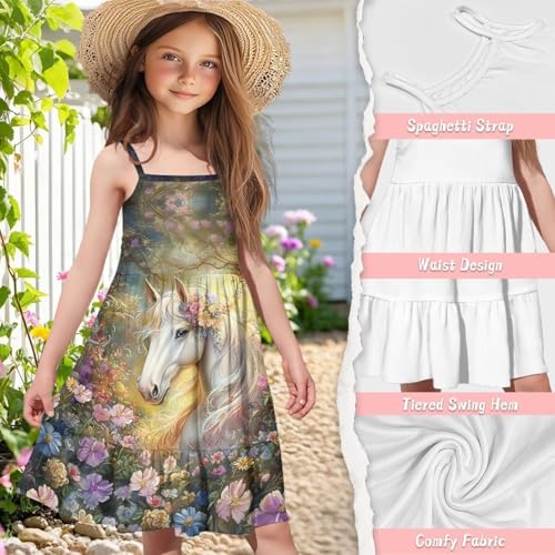Horse Dress Girls Size 3-14 Spaghetti Strap Midi Cami Dresses 4