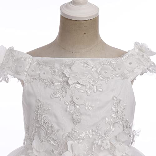 More information about Flower Girl Dress Embroidery Lace Applique Beaded Off Shoulder Long Pageant Formal Wedding Party Dresses for Kids Baby Bridesmaid Birthday Communion Floor Length Tulle Ball Gowns White 9-10 Years