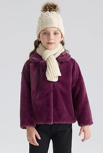 SOLOCOTE Toddler Girls Faux Fur Cloak Jacket Little Kids Fuzzy Fleece Lightweight Hooded Cute Fall Winter Coat 6