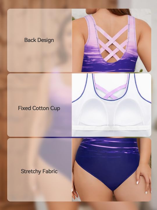 • 【Design】The plus size swimsuit has cross straps on the back, padded cups, and a variety of colors to choose from, allowing you to show off your style.