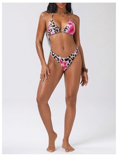 More information about OYOANGLE Women's 2 Piece Swimsuit Leopard Print Halter Neck Tie Back Bathing Suit Triangle Bikini Set